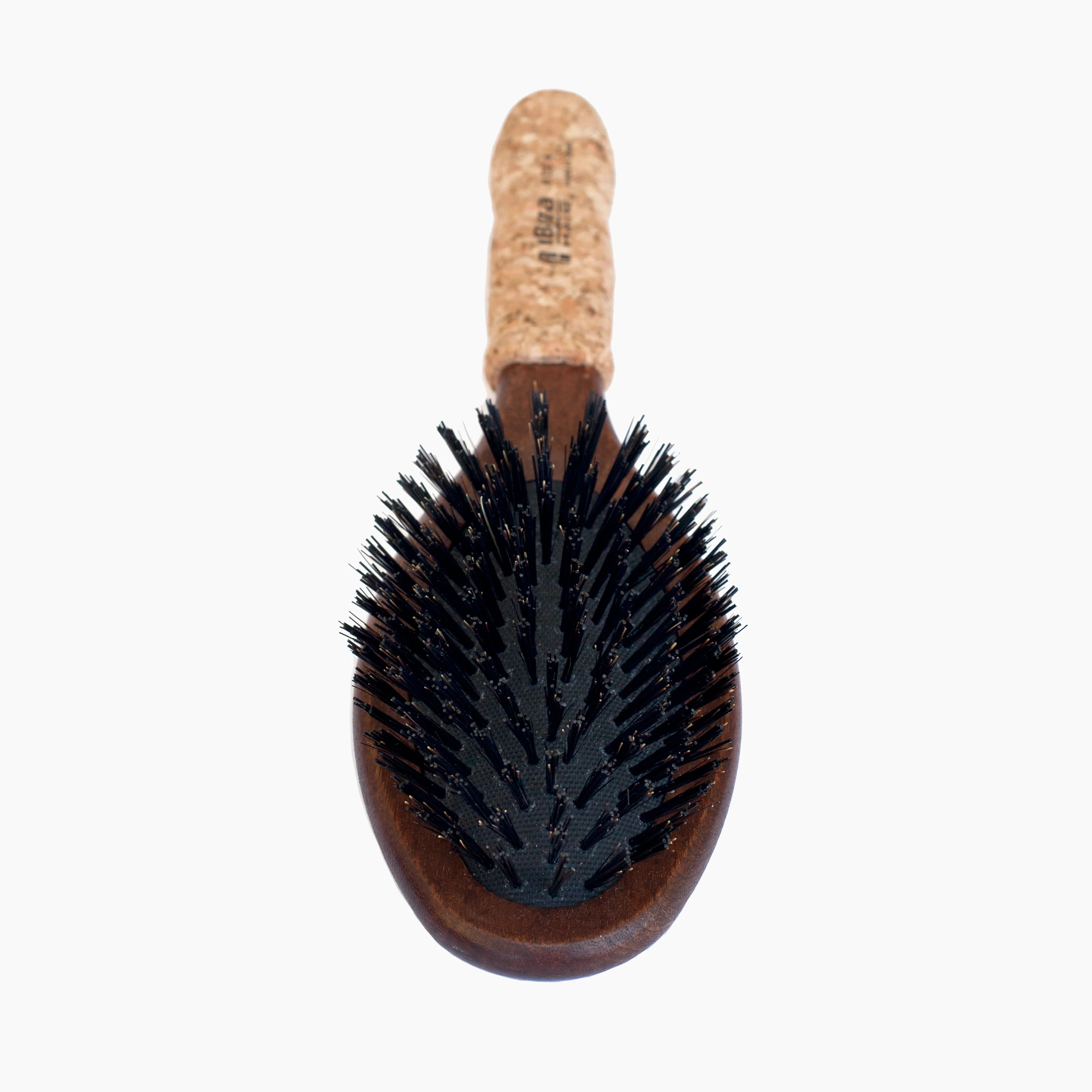 The OC4 is an oval flat brush with reinforced boar bristles and a cork handle.